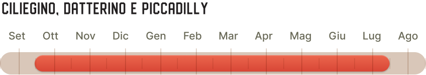 Il Pomodoro Piccadilly, nato nei campi soleggiati delle nostre terre, offre un tripudio di gusto e colore. Con i frutti disposti su un unico stelo, è un'aggiunta decorativa e deliziosa a qualsiasi tavola. Il suo sapore aromatico si abbina perfettamente a sughi, insalate e piatti di pasta, portando l'essenza della Sicilia nella vostra cucina.